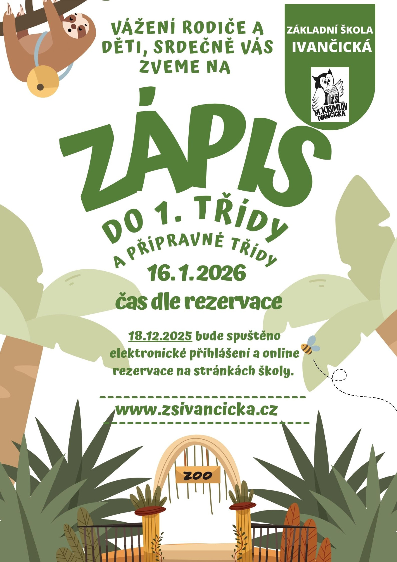 18.12. bude spuštěno elektronické přihlášení a on-line rezervace času zápisu na stránkách školy