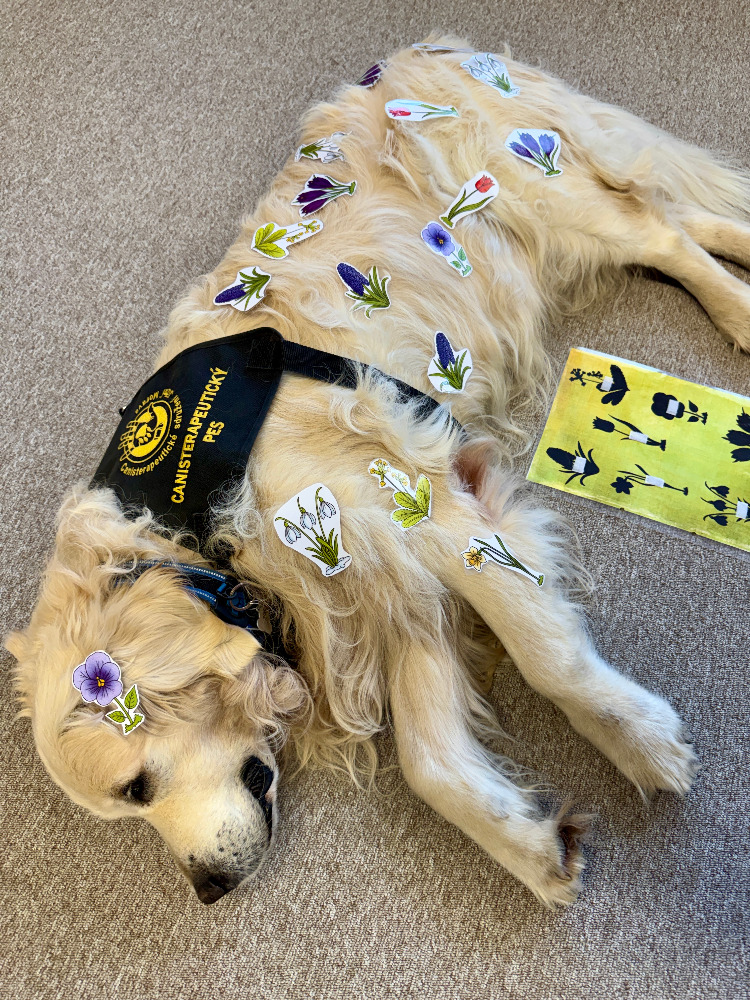 Březnová canisterapie probíhala v příjemné jarní atmosféře. Společně jsme si povídali o jarní přírodě, poznávali kytičky, rozvíjeli slovní zásobu a upevňovali znalost barev. Pejsci nám pomohli nejen s motivací, ale i s rozvojem smyslového vnímání, jemné motoriky a špetkového úchopu.