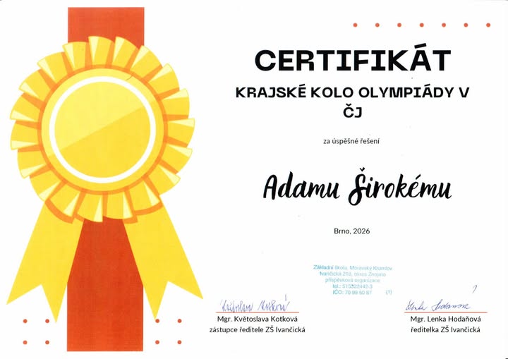 ADAM ŠIROKÝ V KRAJSKÉM KOLE OLYMPIÁDY Z ČJ