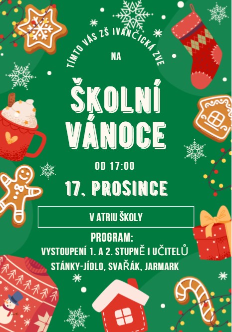 zveme Vás všechny na naše ŠKOLNÍ VÁNOCE, které se uskuteční ve středu